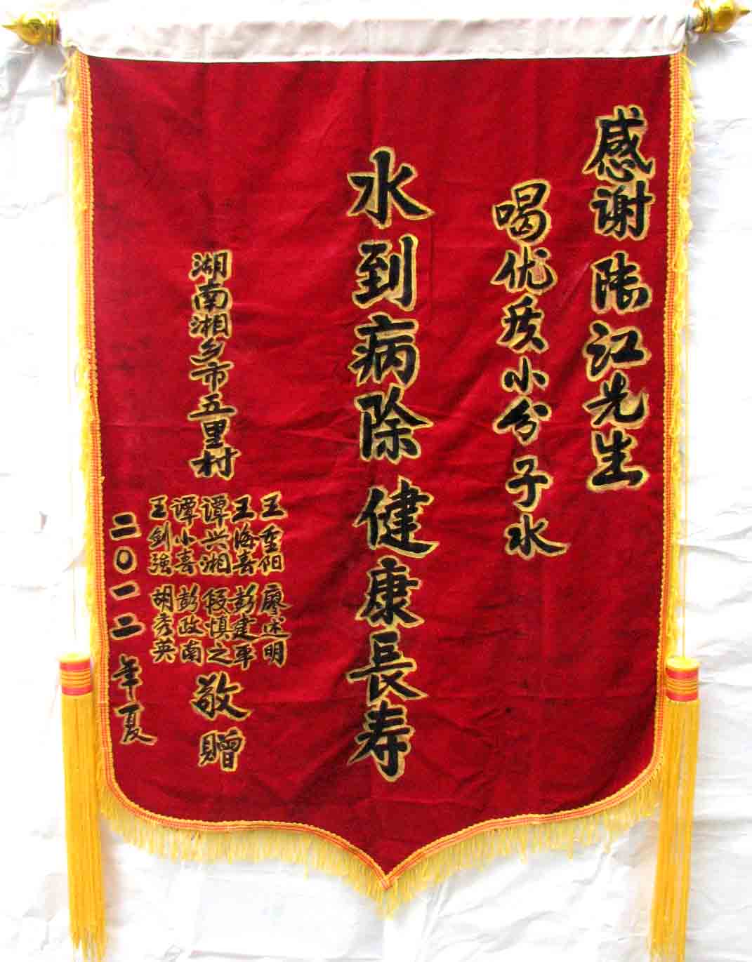 2015年潘志山主動(dòng)寫一篇感想《我以親身實(shí)踐打破了冠心病、高血壓、糖尿病需終生服藥的神話》說堅(jiān)持按發(fā)明人陸?江先生倡導(dǎo)的用已饑方食的方法合理膳食,我的健康狀況越來(lái)越好:糖尿病造成的視力下降有了明顯的恢復(fù),末梢神經(jīng)炎導(dǎo)致的指端潰爛現(xiàn)在完全痊愈,痔瘡自從飲用微小分子團(tuán)水半年后就再也沒有復(fù)發(fā)過,氣滯血瘀造成的嘴唇暗紫也漸漸變得紅潤(rùn),舌下靜脈黑紫消失,足背的動(dòng)脈由以前的隱約感到跳動(dòng)現(xiàn)在變得清晰有力。[13]潘先生披露的訣竅,一是飲用微小分子團(tuán)水給脫水細(xì)胞補(bǔ)水,二是已饑方食”養(yǎng)生智慧,患者都能做到。